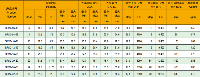 應用標準:GB/T 10544 R12,EN 856 R12,SAE J517 R12