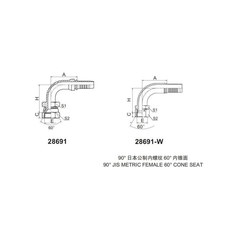 90°JIS METRIC FEMALE 60° CONE SEAT