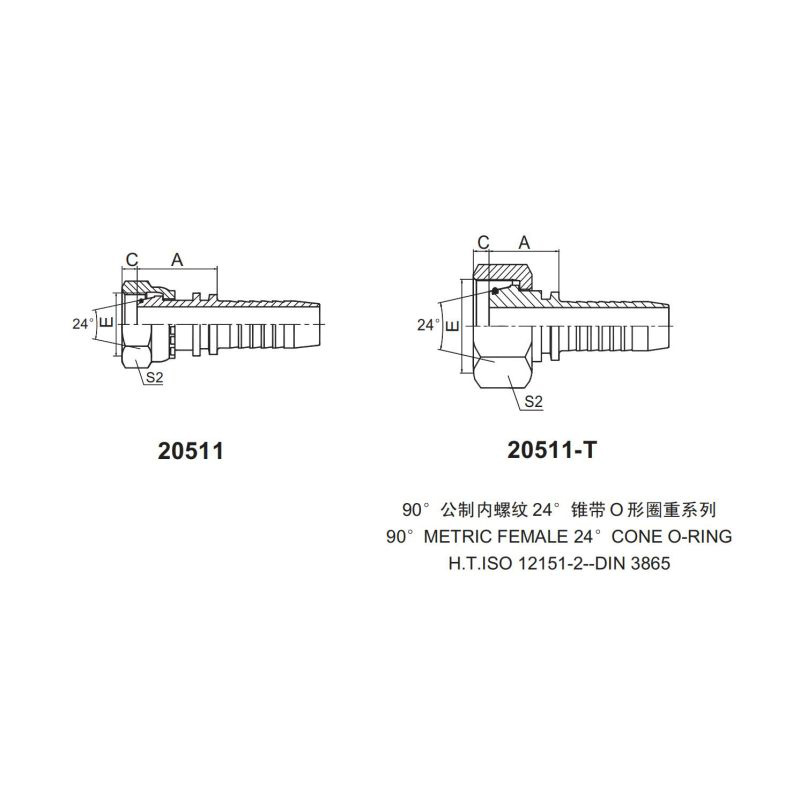 永華標(biāo)準(zhǔn)扣壓式接頭 2051190公制內(nèi)螺紋 24錐帶O形圈重系列90 METRIC FEMALE 24 CONE O-RINGH.T.ISO 12151-2-